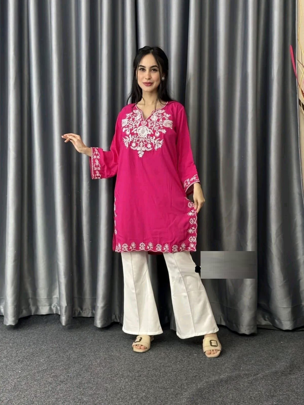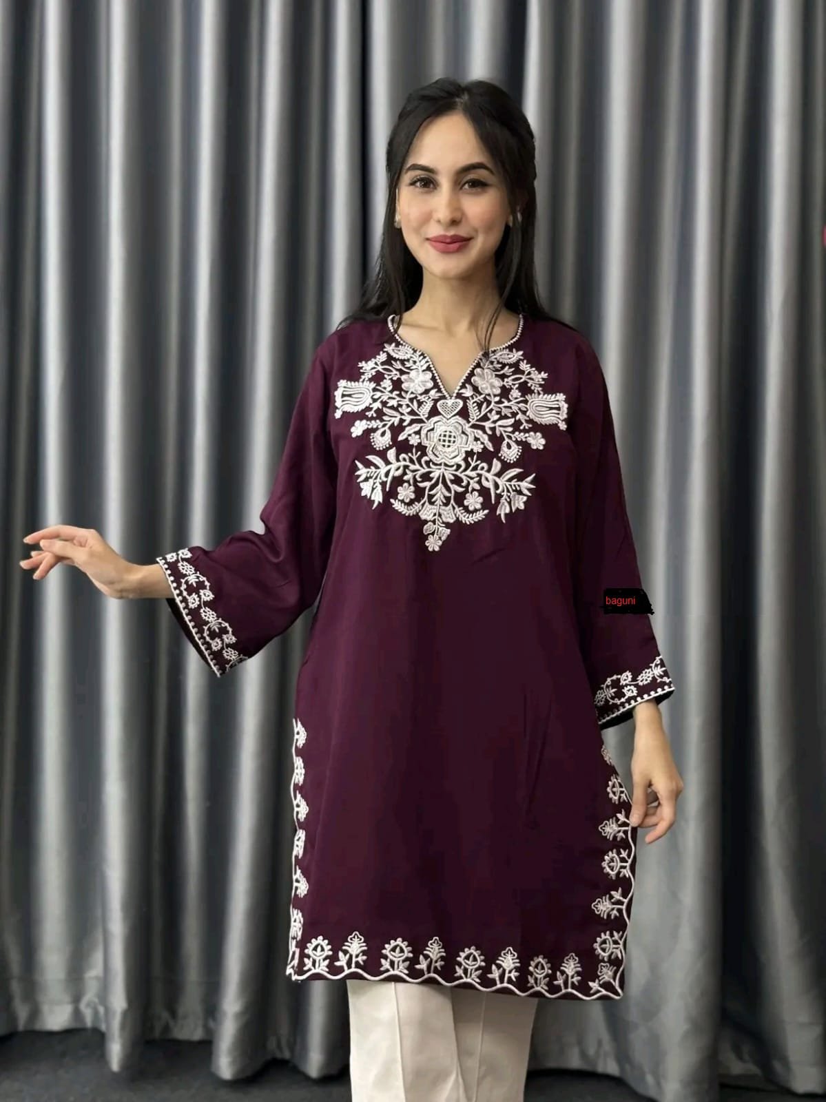 ডিজাইন: গলার অংশ এবং হাতায় রয়েছে আকর্ষণীয় এমব্রয়ডারি নকশা। নিচের বর্ডারেও সুন্দর এমব্রয়ডারি কাজ করা।