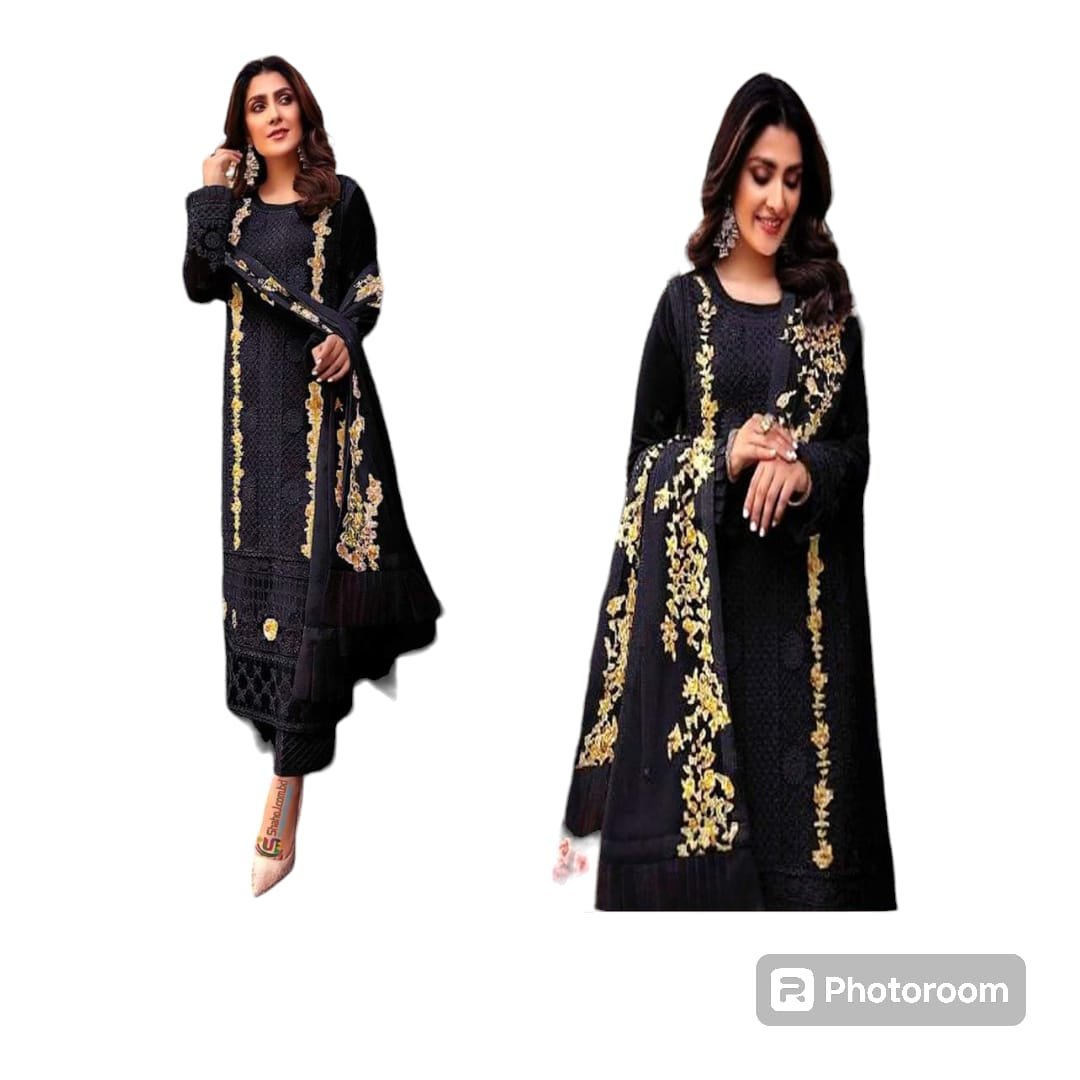 এ্যাপ্লিক কাজ করা  থ্রি পিস ড্রেস