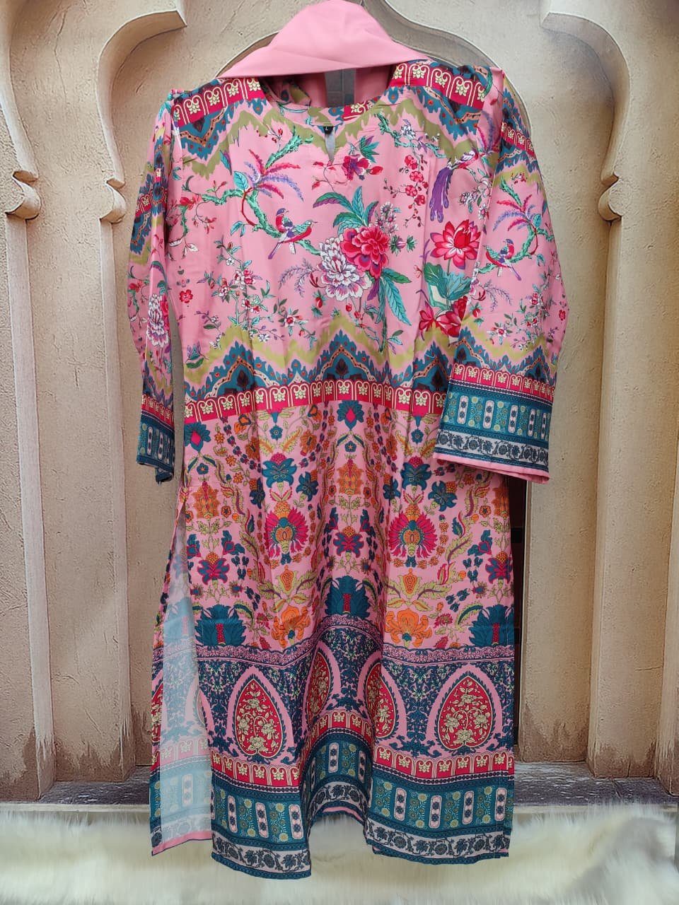 এ্যাপ্লিক কাজ করা  থ্রি পিস ড্রেস