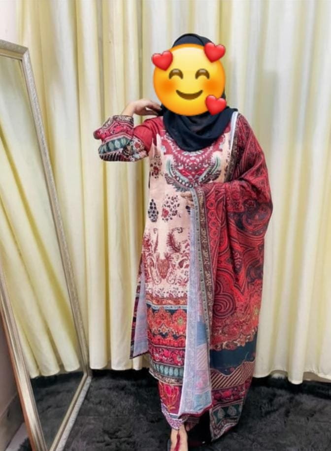 ​উন্নত মানের ফেব্রিক আর চমৎকার ডিজিটাল প্রিন্টের সমন্বয়ে তৈরি এই থ্রি-পিসটি আপনাকে দিবে আরামদায়ক ও স্টাইলিশ লুক।