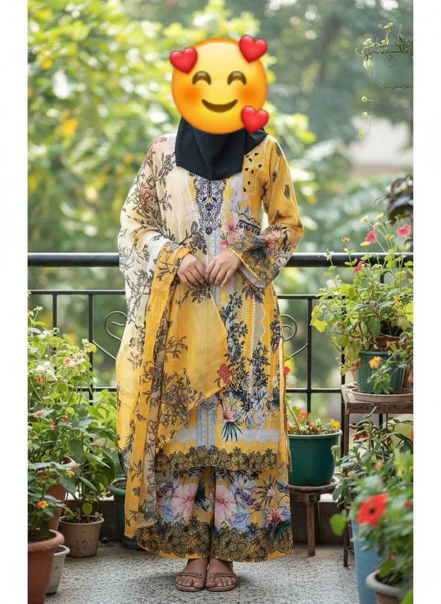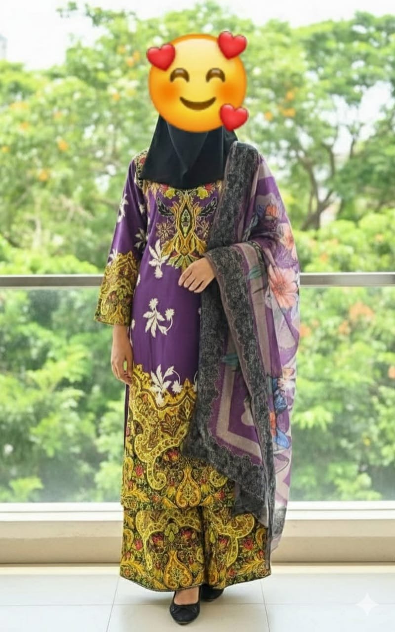 ​উন্নত মানের ফেব্রিক আর চমৎকার ডিজিটাল প্রিন্টের সমন্বয়ে তৈরি এই থ্রি-পিসটি আপনাকে দিবে আরামদায়ক ও স্টাইলিশ লুক।