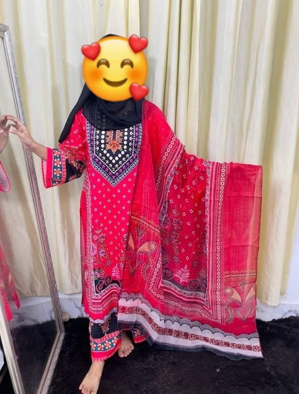 ​উন্নত মানের ফেব্রিক আর চমৎকার ডিজিটাল প্রিন্টের সমন্বয়ে তৈরি এই থ্রি-পিসটি আপনাকে দিবে আরামদায়ক ও স্টাইলিশ লুক।