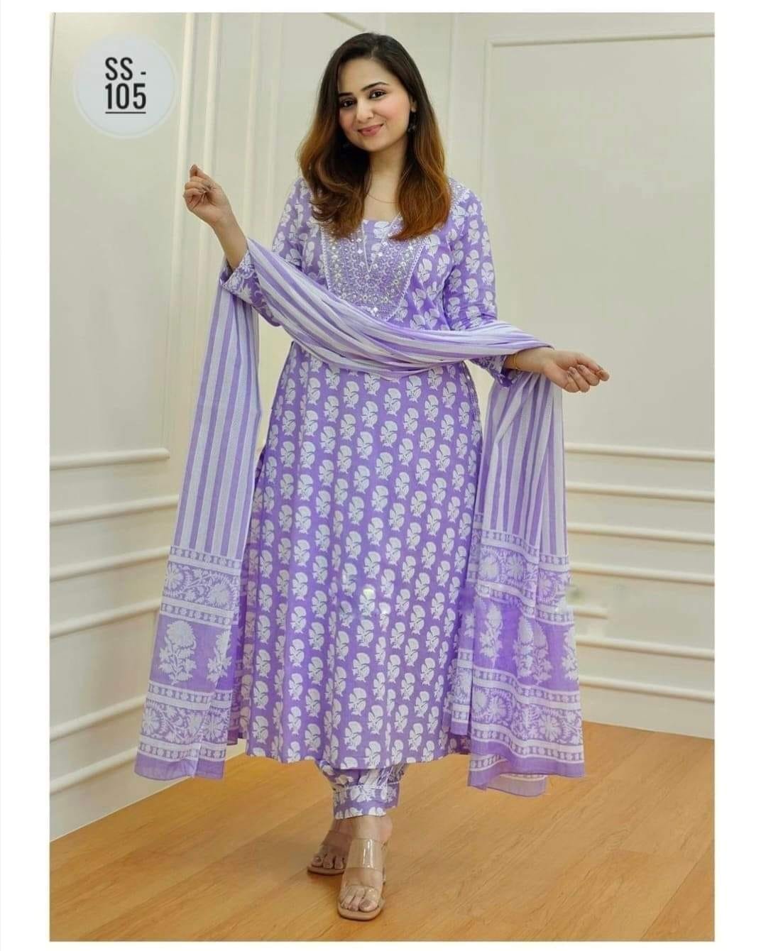 এ্যাপ্লিক কাজ করা থ্রি পিস ড্রেস