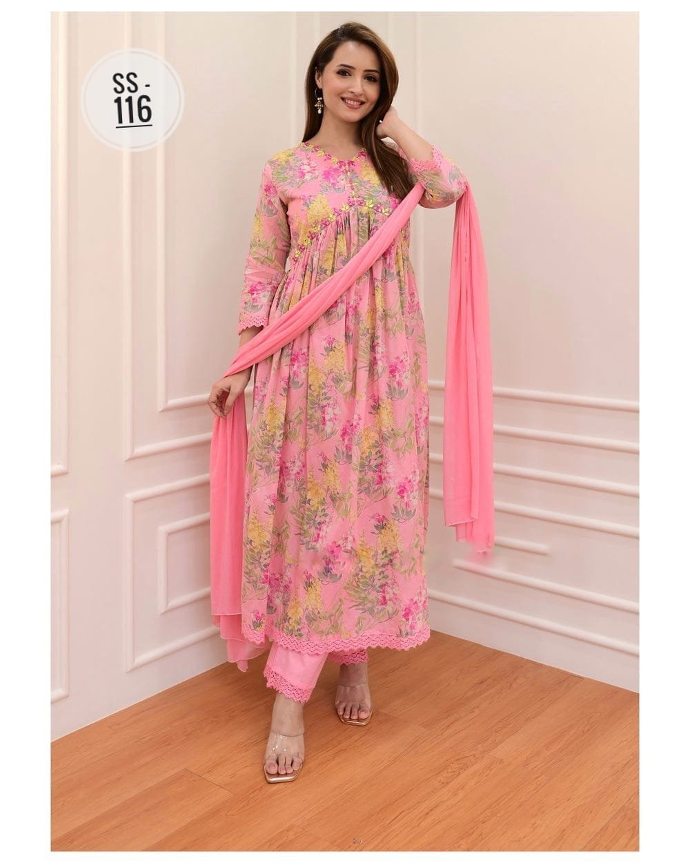 এ্যাপ্লিক কাজ করা থ্রি পিস ড্রেস